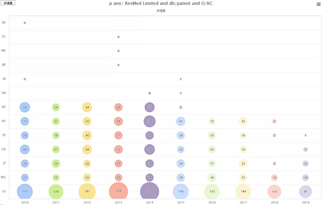 从上图可知,美国、澳大利亚、中国、日本和欧洲为布局重点,新西兰有竞对费雪派克,前期也做了布局,2015年可能考虑到市场规模等原因,未再有新的专利布局。