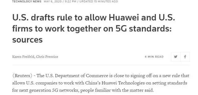 在“封禁”华为一年之际,5月7日,美国商务部拟签发一份新规,以允许美国企业和华为共同合作参与5G网络标准的制定。
