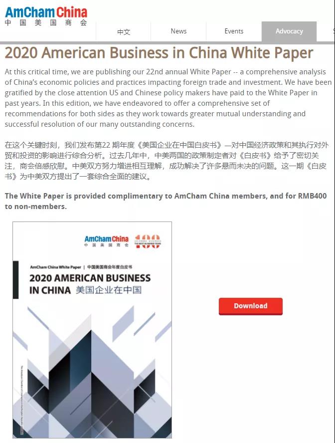 4月30日,中国美国商会发布最新一期(第22版)《美国企业在中国》白皮书,称多数美国企业仍看好中国市场,认为中国市场值得长期、战略性投入,其中大约35%的会员企业将中国视为排名前三的投资重点。